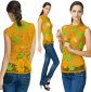 Irish lace blouse mustard-colored withg reen leaves.