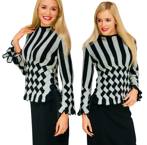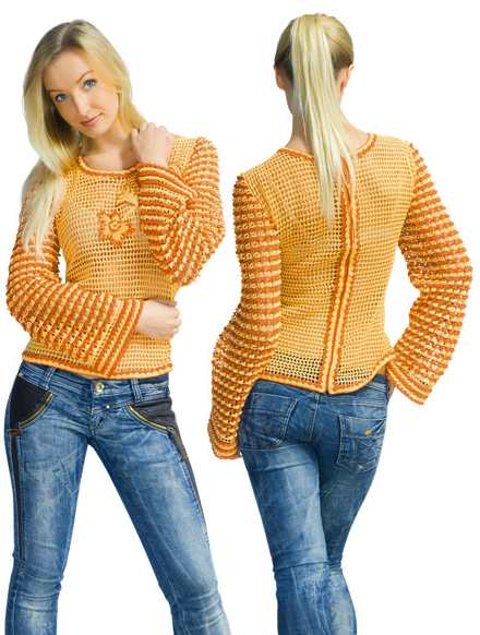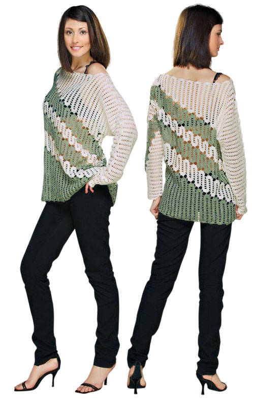 Women's tunic crocheted using the Brugge lace technique, white and gray