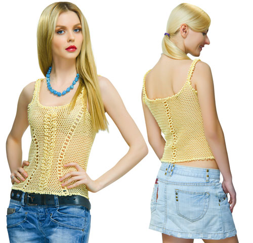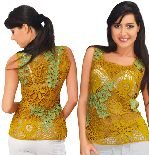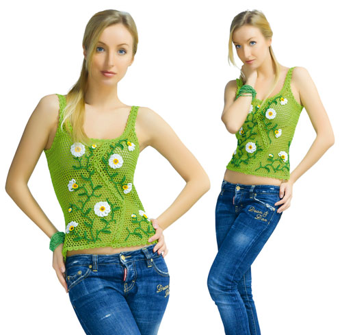 Lime crocheted exclusive elegant top with the decor ofdaisy flowers