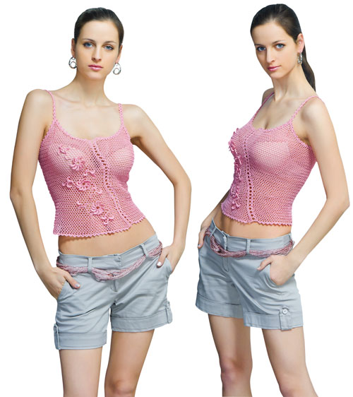 Top crocheted exclusive elegant pinkwith flowers decor
