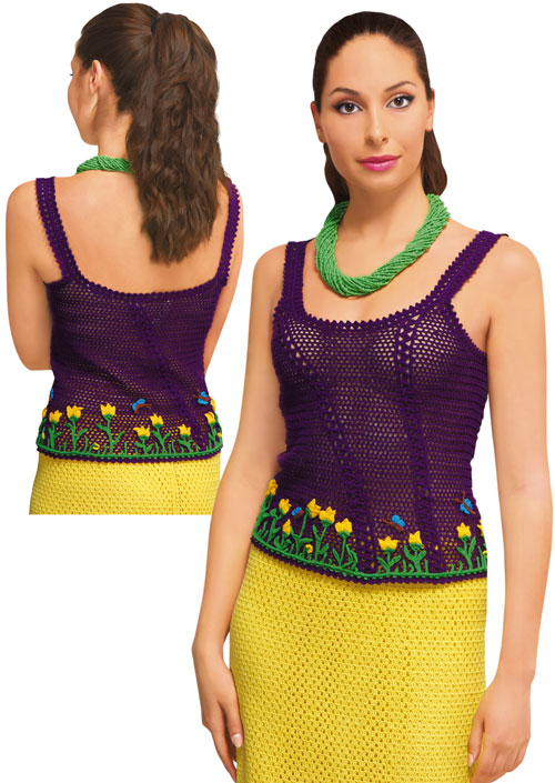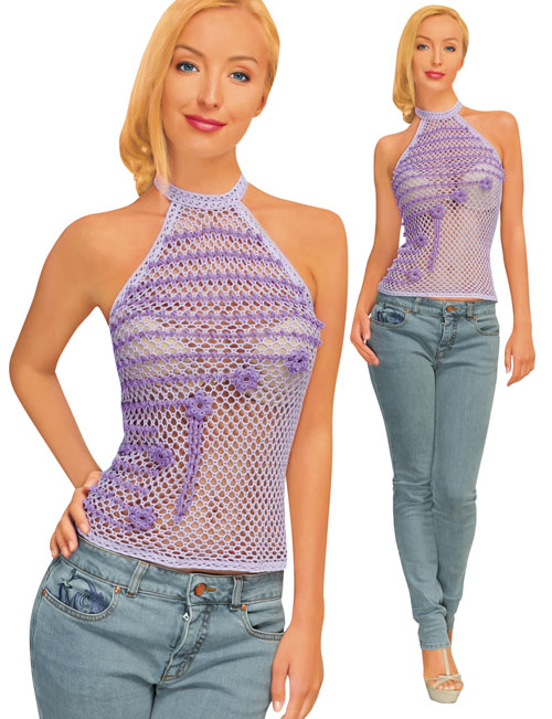 Purple crocheted exclusive elegant top with tulip flower decor